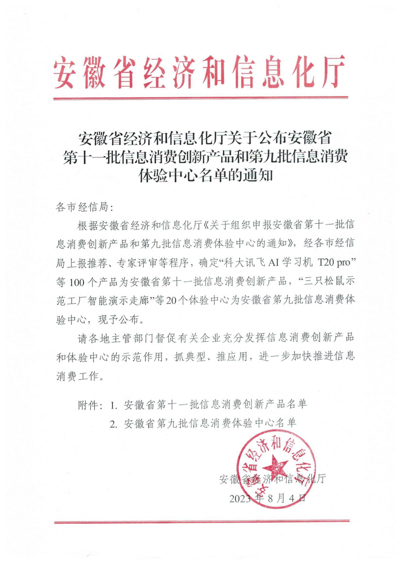 ? ? ? 8月4日,安徽省经济和信息化厅发布了“安徽省第十一批信息消费创新产品和第九批信息消费体验中心”名单,安徽中欧体育信息技术有限公司的数据安全治理协同平台成功入选《安徽省第十一批信息消费创新产品》。